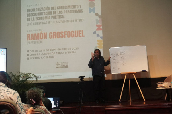 Caracas, 11/09/2025 – La última sesión del seminario «Decolonización del conocimiento y descolonización de los paradigmas de la economía política: ¿Qué alternativas ante el sistema-mundo actual?», realizada este jueves 11 de septiembre y dirigida por el sociólogo puertorriqueño Ramón Grosfoguel, giró en torno a temas fundamentales para descolonizar los postulados de la economía política en Nuestra América.