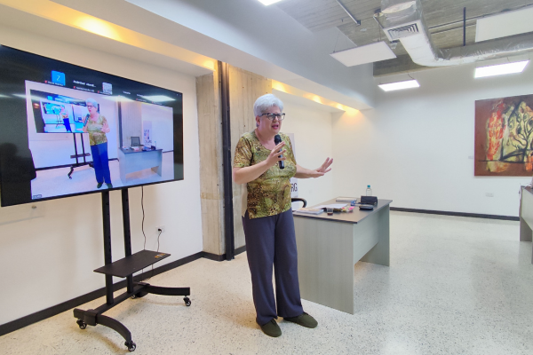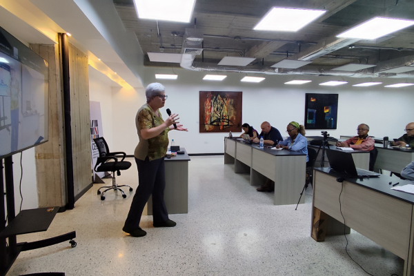 La profesora, filósofa venezolana e investigadora del CELARG, Alexandra Mulino, guió a las y los participantes a través de un análisis exhaustivo de cómo la cultura del latifundio ha moldeado las estructuras políticas de América Latina.