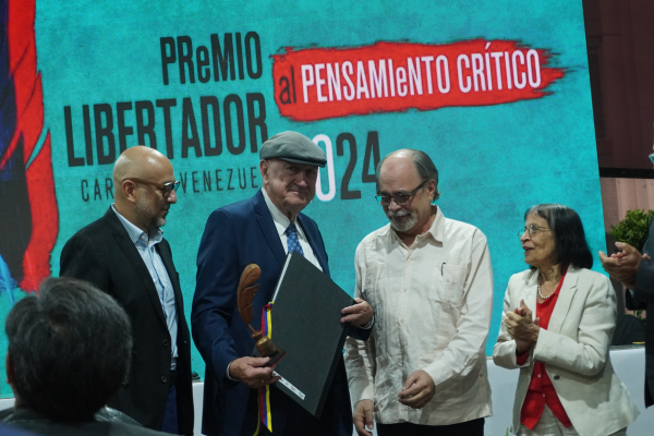 Caracas, 8 de septiembre de 2025 – En una emotiva ceremonia celebrada en la sala Luis Britto García del Centro de Estudios Latinoamericanos y del Caribe Rómulo Gallegos (Celarg), se entregó la decimotercera edición del Premio Libertador al Pensamiento Crítico 2024 al filósofo cubano Pablo Guadarrama, por su obra “Marxismo y Antimarxismo en América Latina. Crisis y renovación del socialismo” (Volúmenes I y II), editado por la Fundación Editorial El Perro y la Rana.