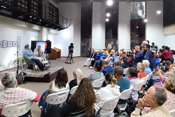 Caracas, 10 de octubre de 2025.- El escritor, dramaturgo y ensayista Luis Britto García celebró este jueves sus 85 años en la Sala de Lectura que lleva su nombre, en el Centro de Estudios Latinoamericanos y del Caribe Rómulo Gallegos (CELARG). En un emotivo encuentro, Britto García, presente y activo, protagonizó el conversatorio “Luis Britto García, utopista”, junto al periodista Rubén Wisotzki, donde reflexionaron en profundidad sobre la creación, el sentido de la vida y la imaginación. Reconocimiento a su trayectoria El ministro del Poder Popular para la Cultura, Ernesto Villegas, reconoció la valiosa contribución del autor a la cultura venezolana. En reconocimiento a su trayectoria, le entregó el Premio Alí Primera y lo certificó como Patrimonio Cultural de Venezuela, reafirmando así su legado vivo en las prácticas y conocimientos culturales del país. Durante el diálogo con el periodista Rubén Wisotzki, Luis Britto afirmó que el verdadero desafío del artista es reinventar la forma, incluso cuando todas las historias parecen estar ya contadas, y destacó que la provocación es clave para inspirar nuevas creaciones y generaciones de artistas. “Es hacer algo que motive al resto a crear, inventar, pintar y escribir (…). La función del creador es provocar que surjan nuevos creadores que imaginen una maravilla inédita y prodigiosa que supere todo lo que se ha hecho”, aseguró. La clave para construir utopías Al abordar el papel de la imaginación y la utopía, Britto García vinculó la creación con el sueño, el origen de los mitos y la superación del sentido fáctico de la vida. Cuando Rubén Wisotzki le preguntó sobre los pasos para construir una utopía, Britto respondió con tres esenciales: “Primero imaginación, segundo imaginación y tercero más imaginación”. Reflexiones sobre Venezuela Además, Britto García abordó la realidad geopolítica de Venezuela, reflexionando sobre los desafíos que limitan la edición y lectura de libros en un país bloqueado por el imperialismo gringo y europeo. “Con el bloqueo, la edición y la lectura de libros se han restringido considerablemente. Los venezolanos vivimos peligrosamente, con todos los poderes del mundo en contra. Vivimos peligrosamente, y esa es la forma más digna de vivir”, sentenció. Aprecio por otros autores Al referirse a otros autores, Britto García compartió apreciaciones personales sobre la humildad y coherencia del argentino Julio Cortázar y la visión creativa del venezolano Orlando Araujo. Wisotzki recordó las anécdotas entre Julio Cortázar y Luis Britto García, lo que motivó a este último a expresar su satisfacción por haber conocido al “cronopio” de Nuestra América. “Tuve la satisfacción de conocer a Julio (Cortázar). Era una persona modesta y amable (…). Un cronopio es ser uno mismo con lo que se crea. Julio era su propia existencia”, señaló Britto García. Sobre Orlando Araujo, Britto compartió sus enseñanzas acerca de la invención narrativa: “Quizá lo que dice Orlando (Araujo) es cierto: todas las historias ya están contadas. La invención está en la forma. Uno tiene que inventar cosas”. Exposición bibliográfica En paralelo al conversatorio, se inauguró la exposición bibliográfica titulada “Luis Britto García, un gran utopista”, que reúne libros, artículos de revista, dibujos realizados por el propio autor, fotografías de la Colección Jaime Ballestas (Otrova Gomas) y un video que revela su entrega al acto de creación cotidiana “achinchorreado”. Esta muestra complementa el homenaje y brinda al público una visión integral de su producción y legado.